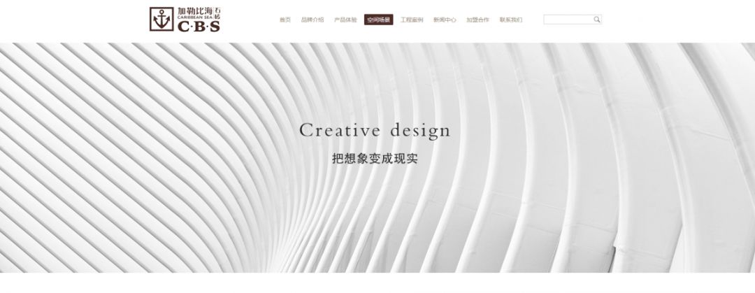 加勒比海石磚新官網采用時尚鮮明設計理念,將加勒比海品牌的時尚感融入其中,視覺設計中采用簡潔的網頁設計,配以大海、冒險配圖,平衡了整體畫面感,又能與加勒比海石磚logo相呼應,強調品牌的個性化。