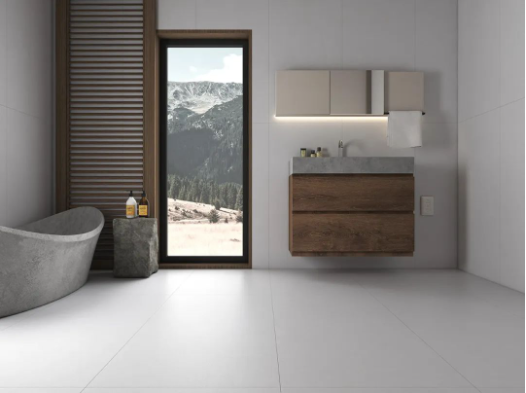以簡(jiǎn)單純粹的姿態(tài),洗去繁忙工作和喧囂日常帶來(lái)的疲憊感。750x1500mm西江月通鋪浴室,細(xì)沙干粒半拋帶來(lái)的天然質(zhì)感搭配原木色浴室柜,干凈配色與極簡(jiǎn)設(shè)計(jì),為空間打造與眾不同的寧?kù)o時(shí)光。