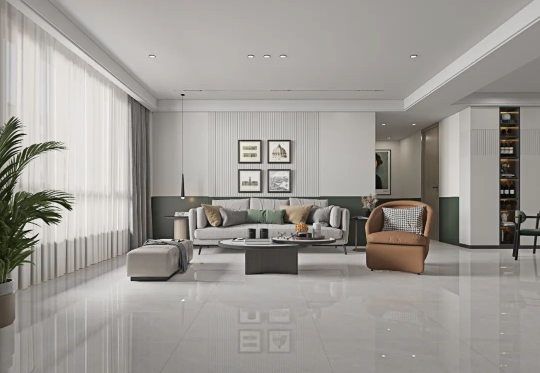 大自然的張力與秀麗并存,灰白兩色為基調的客廳,利用墨綠色進行點綴,配以舒適的抱枕躺上去仿佛置于溫柔的流水,給客廳帶來更多的生機。