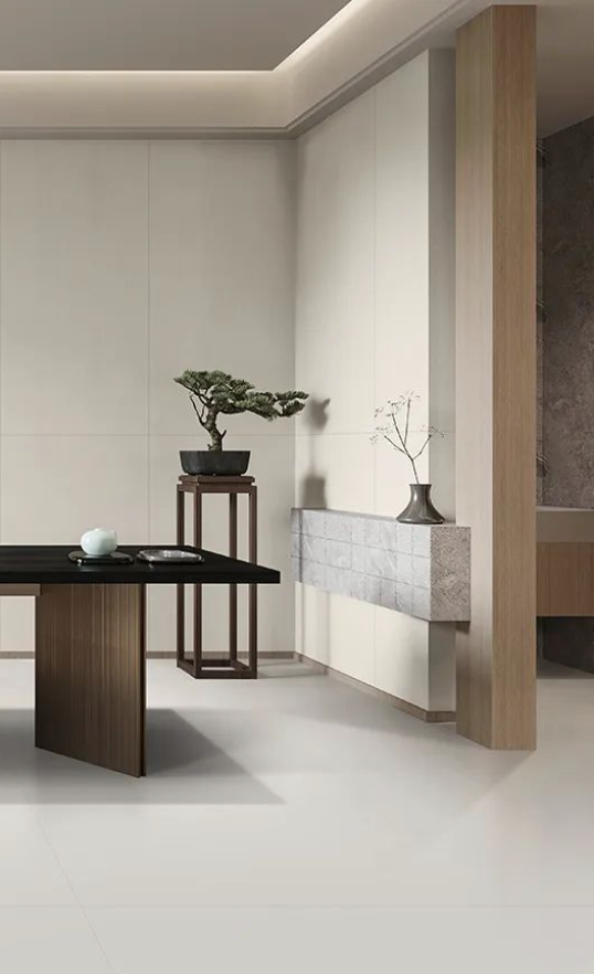 如同回歸大自然清新脫俗的木紋縱橫交錯(cuò),搭配宋素|凡古磚肌膚釉工藝自帶的8°柔光,在方寸之間展現(xiàn)簡(jiǎn)潔、大方,暖灰色系結(jié)合恣意流暢的紋理,在光線渲染下,如朦朧月色裝飾空間,深邃而又浩渺,讓家中再現(xiàn)溫馨回憶。